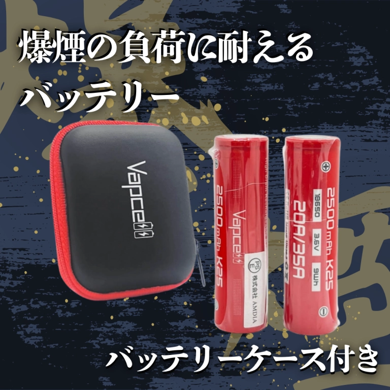 ・【Vapcell】18650 K25 2500mAh 35A[2本入り / 赤ハードケース付き]